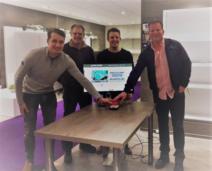 Op de foto lanceren Martijn Kraft (Heibel) en Tjerk de Jong (Survival Kootstertille) symbolisch de nieuwe website. Daarachter de werkgroepleden Sytze de Graaf en Gerrit van der Velde. Op de foto ontbreken de werkgroepleden Hendrik Dijkstra, Gerhard de Vries, Aletta Attema en Esther Bosma.