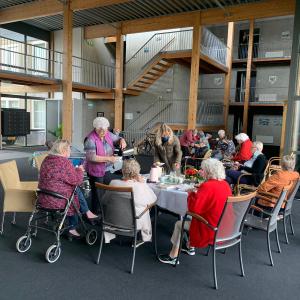 Rond 10:00 was het voor even gedaan met de rust. Tolsma Draaiorgelverhuur uit Leeuwarden kwam voor rijden met een draaiorgel vol Hollandse muziek. Bakkerij Gouma uit Buitenpost verzorgde heerlijk gebak bij de koffie. De sfeer zat er goed in. We zagen veel glimlachen, handen in de lucht en hier en daar een voetje van de vloer. Tussen de bewolking door leek er zo toch een zonnetje in huis.